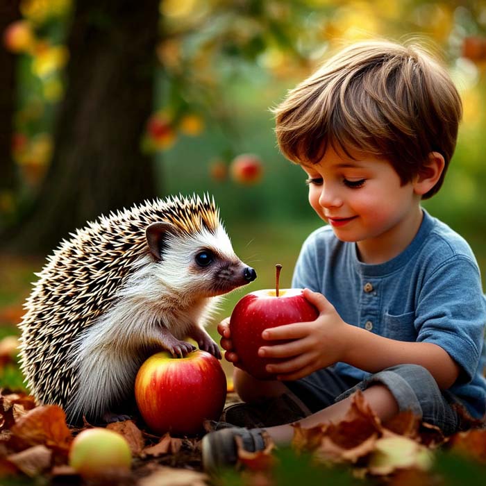 - Вот теперь можно и покушать! - с восторгом заявил ёжик, но как только он хотел откусить кусочек яблока, раздался голос мамы: