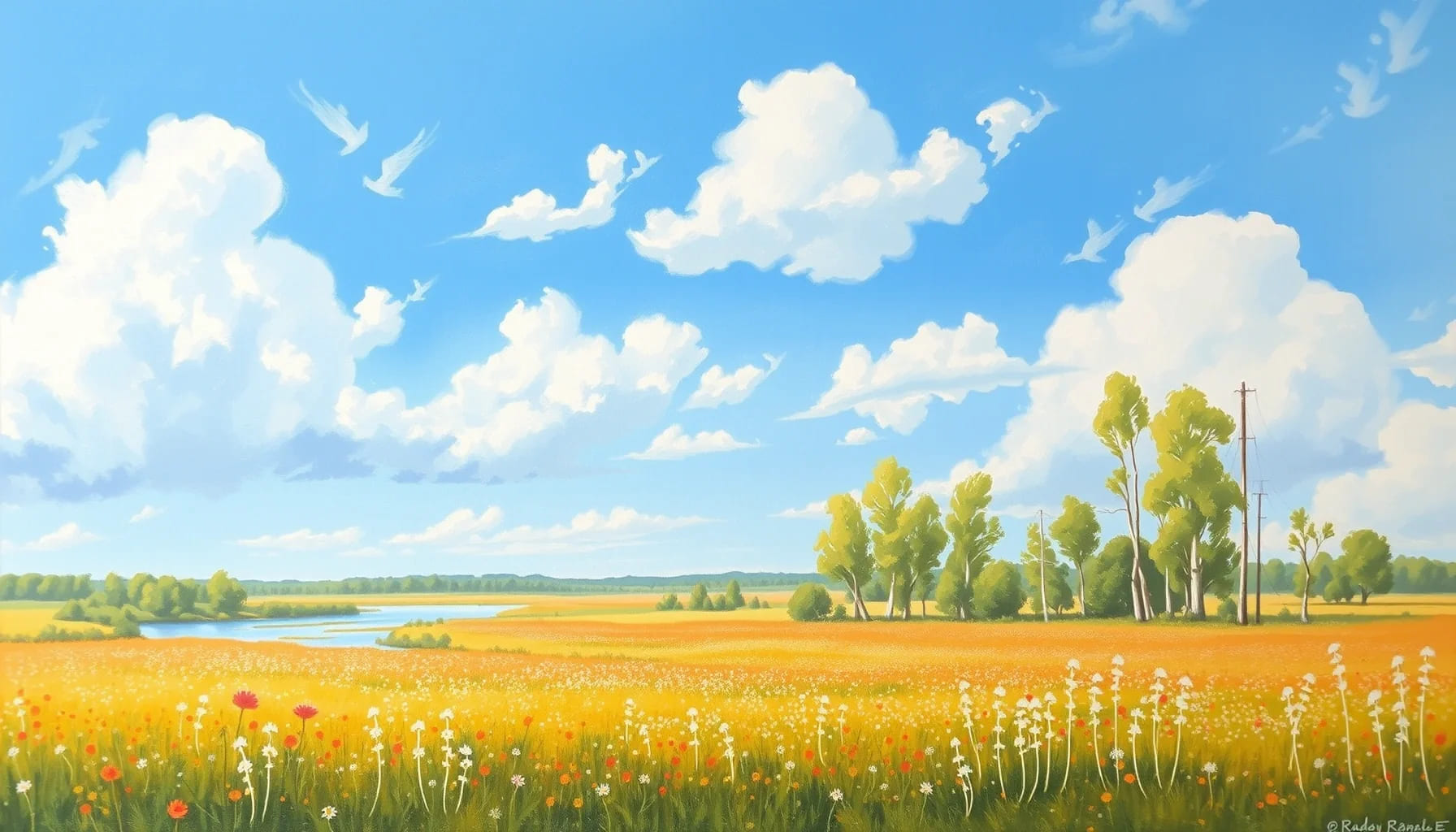 Акварель блистающей реки.