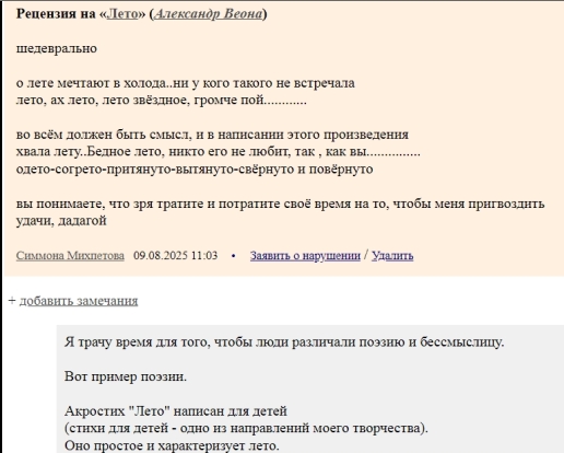 Рецензию на мой стих "Лето" Михпетова написала в ответ