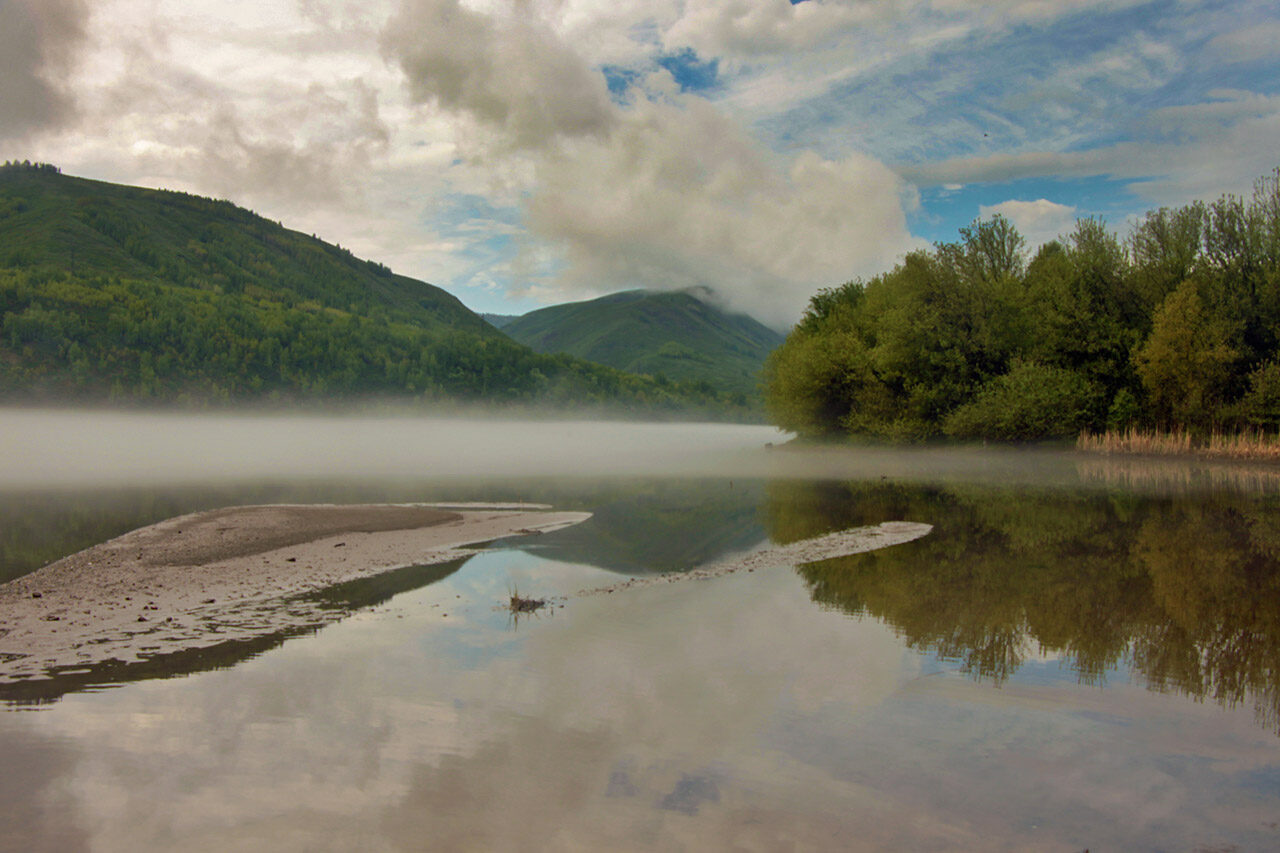 Тумана над рекою скатерть нежная