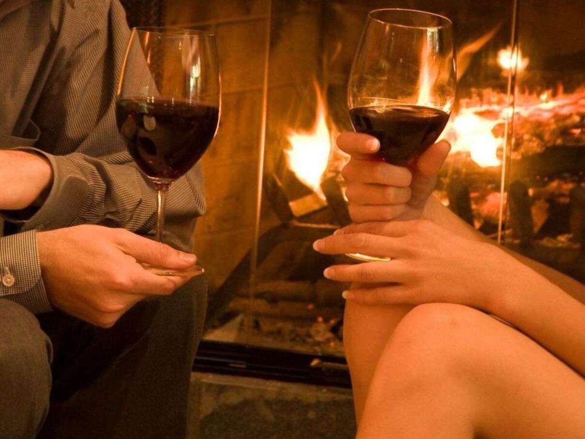 стол, два бокала и вино,
