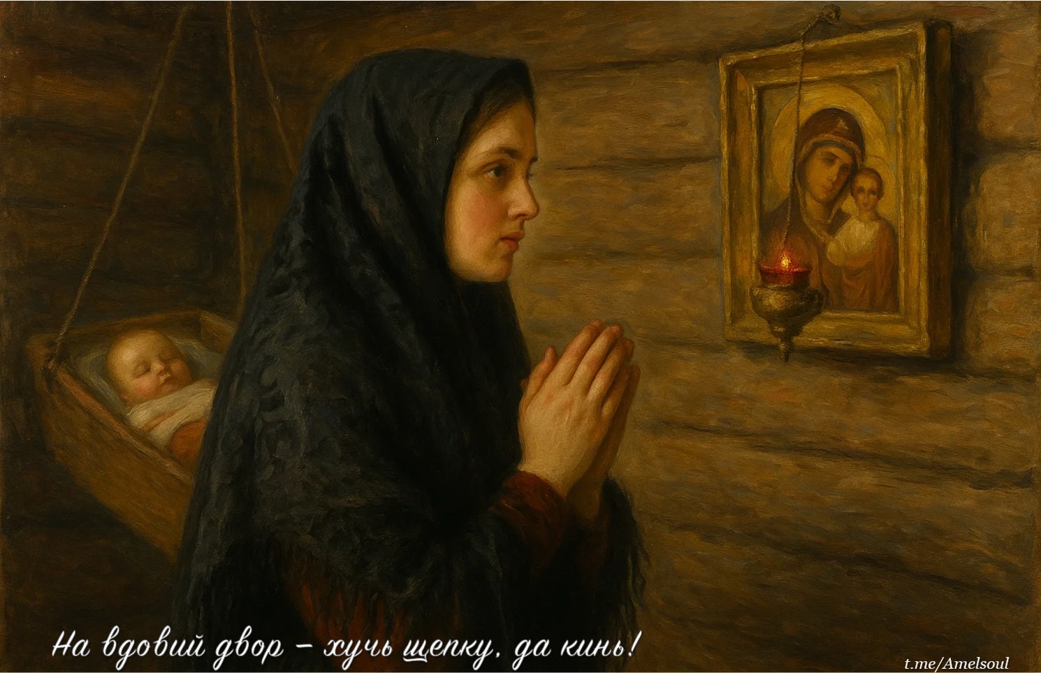 В хуторах и станицах так и говаривали: "На вдовий двор — хучь щепку, да кинь!"