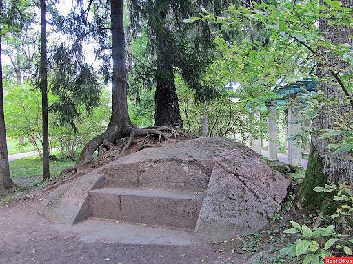 Валун ледниковый, а в камне - скамья,