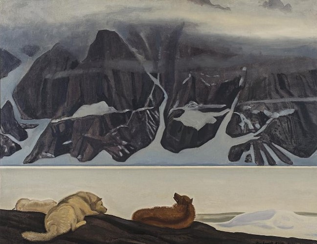 Иллюстрация картины, автор Кент Р. «Собаки во фьорде Кангердлуарссук» 1932–1933