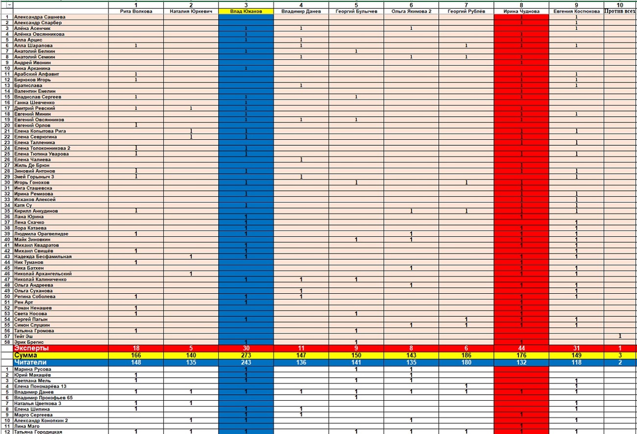 Во втором туре участвовало 63 автора, а десятка лучших такая: