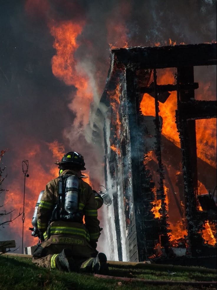 Пламя отражается в окне.