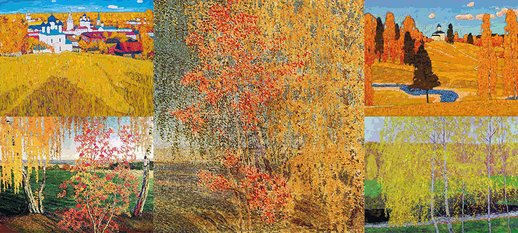 Представлены полотна следующих живописцев: Кима Бритова ( 2 работы ), Игоря Грабаря, Ефрема Зверькова; по середине Игоря Грабаря.