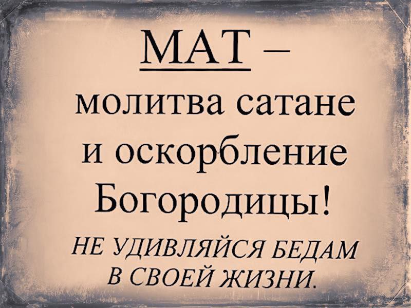Мат оскверняет человека, убивает его душу. В компании матерщинников возникает ложный стыд сказать искреннее, доброе слово. Такая компания глумится не только над словами «любовь», «красота», «добро», «милость», «жалость», она пресекает саму возможность открытого, чистого взгляда.
