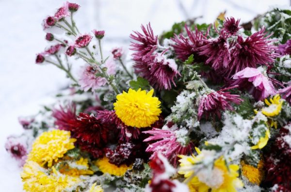 Астры с хризантемами в снегу...