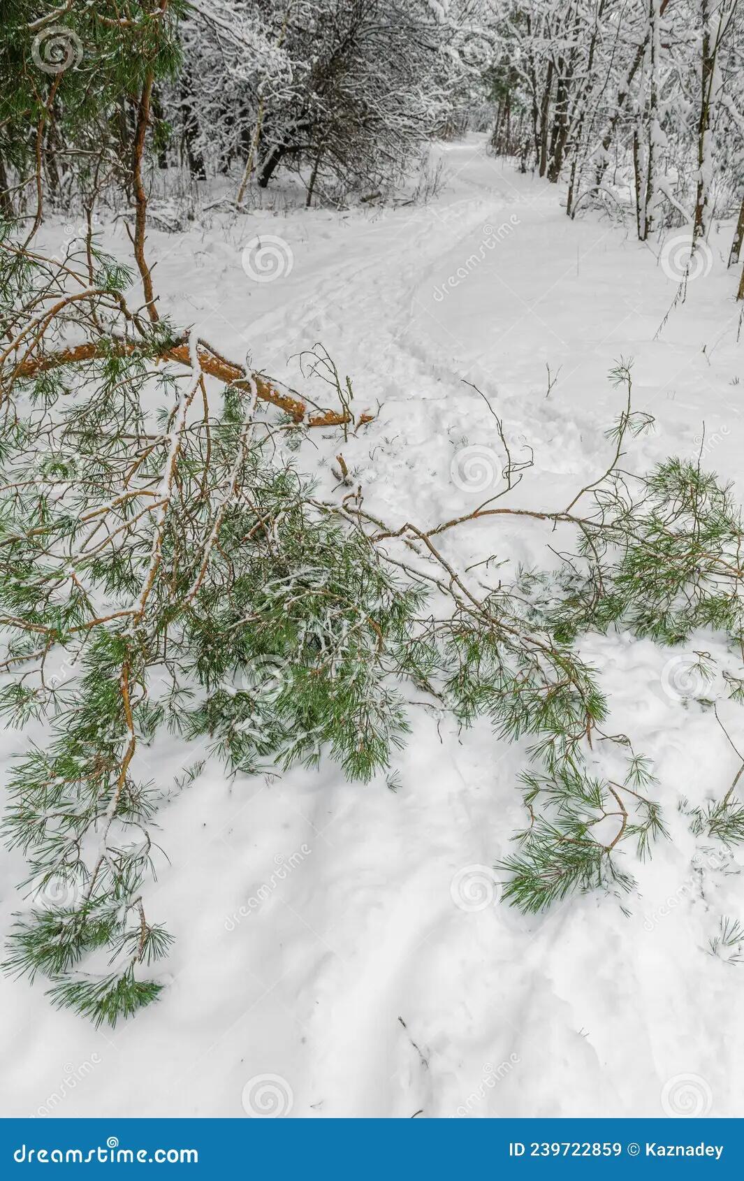 мокрый снег и от тяжести ломались ветки деревьев.