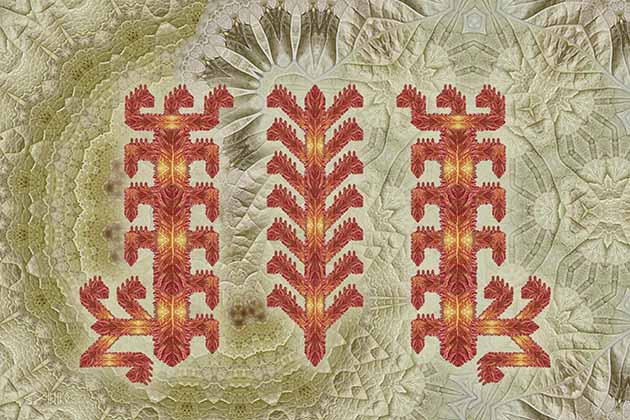 Использован рисунок Мирового Древа из народной вышивки. В сакральном Древе можно найти понимание жизни, благополучия и вечности. Народная вышивка всегда создавалась и создаётся, чтобы оберегать и защищать. В этом её предназначение.