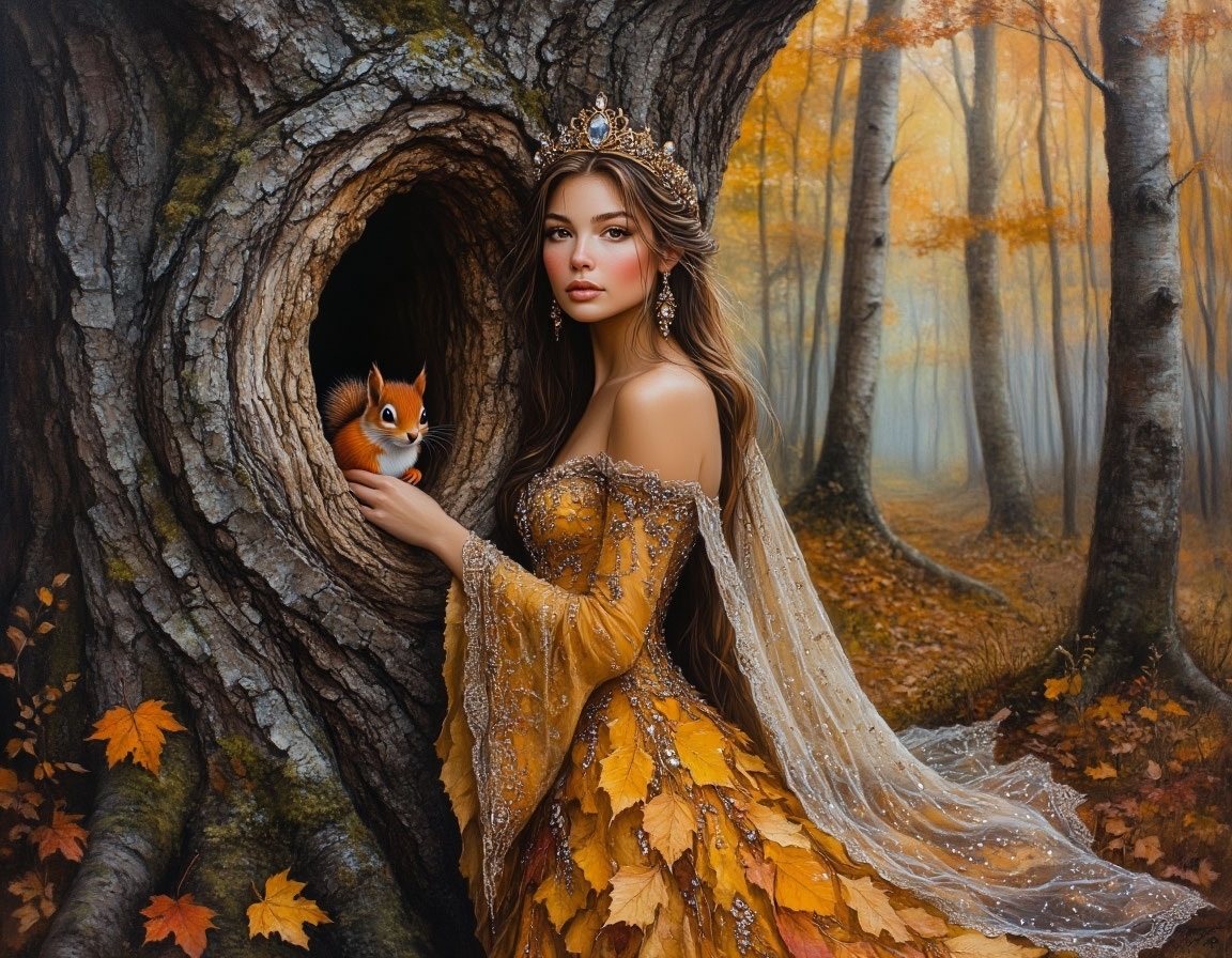 Стихотворение написано для конкурса "Осенняя сказка". Иллюстрация - Веры Дородновой в соавторстве с нейросетью.