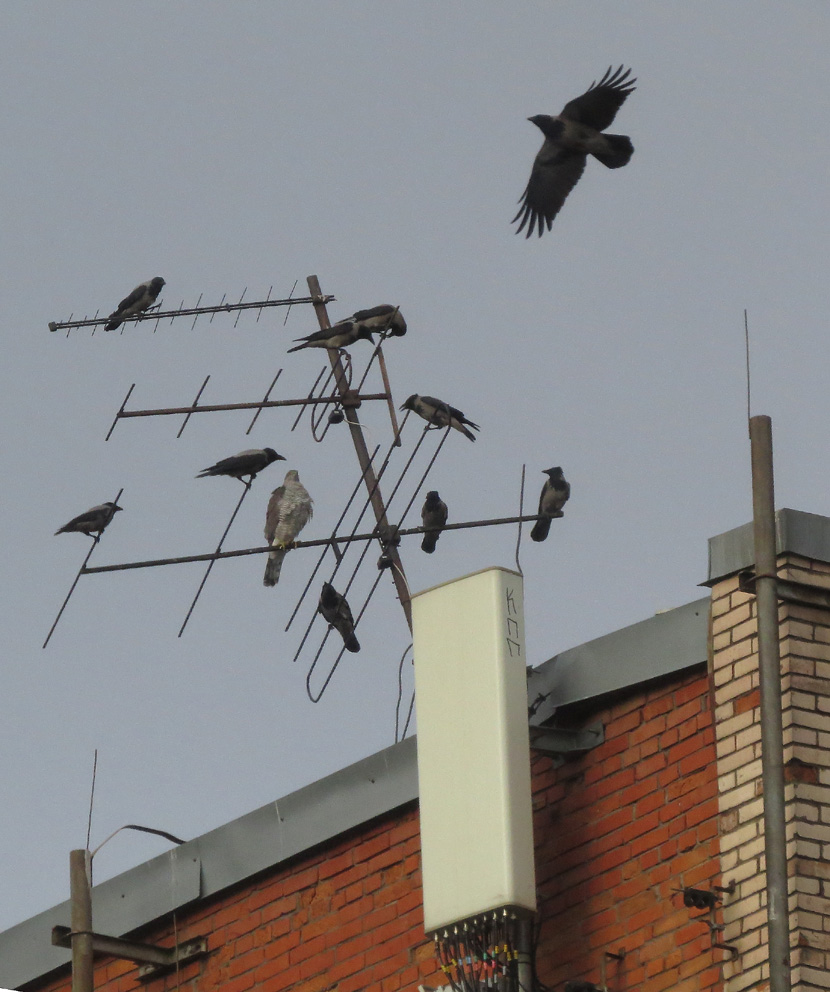 Вскоре ястреб на антенну сел,