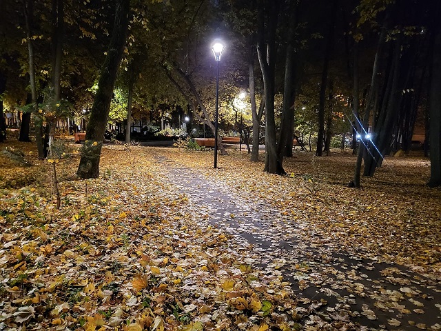 В парке, возле фонаря