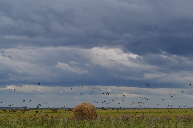 Над просторами сжатых полей.