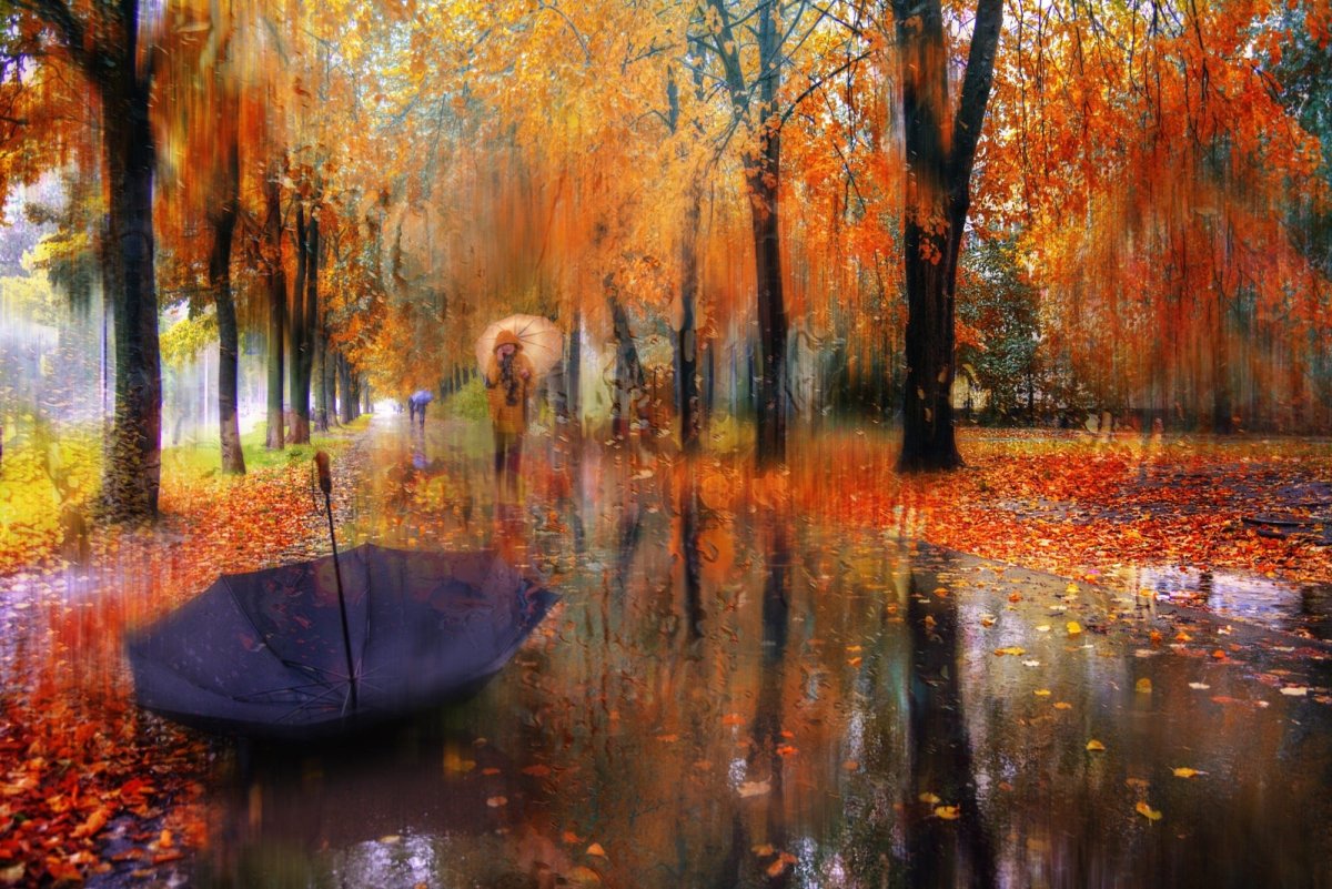 В потоках серых осенних дождей,