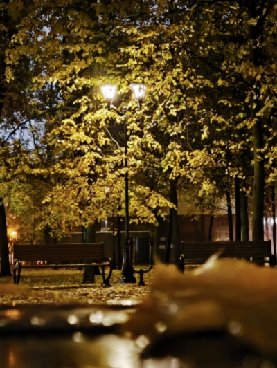 Фонарь дрожит в листве, как две свечи,
