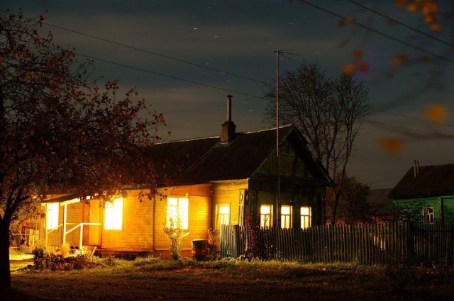 Над деревней опустился вечер,