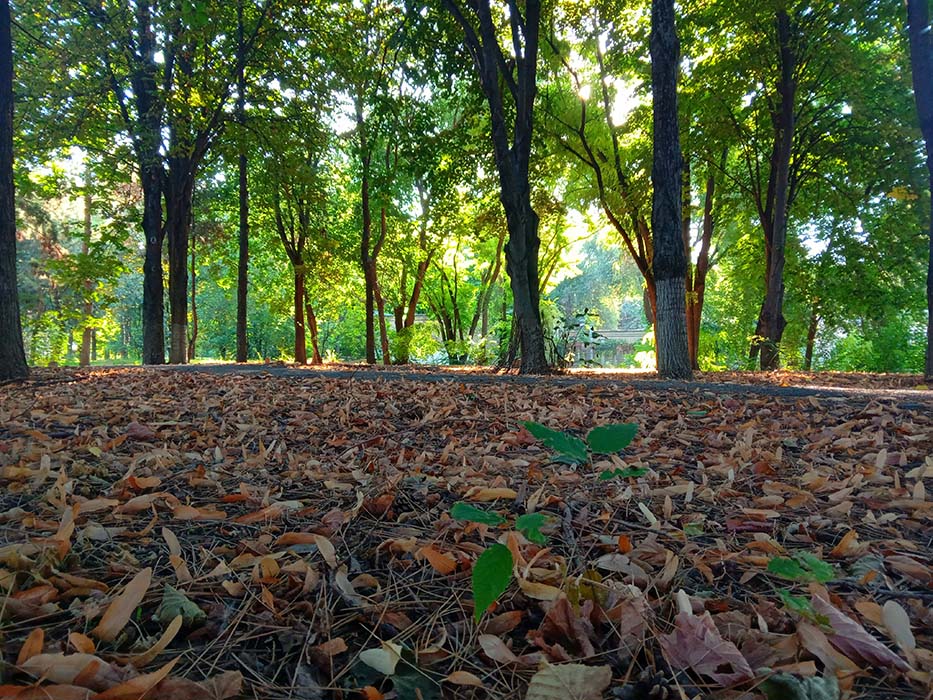 Желтая багряная листва.