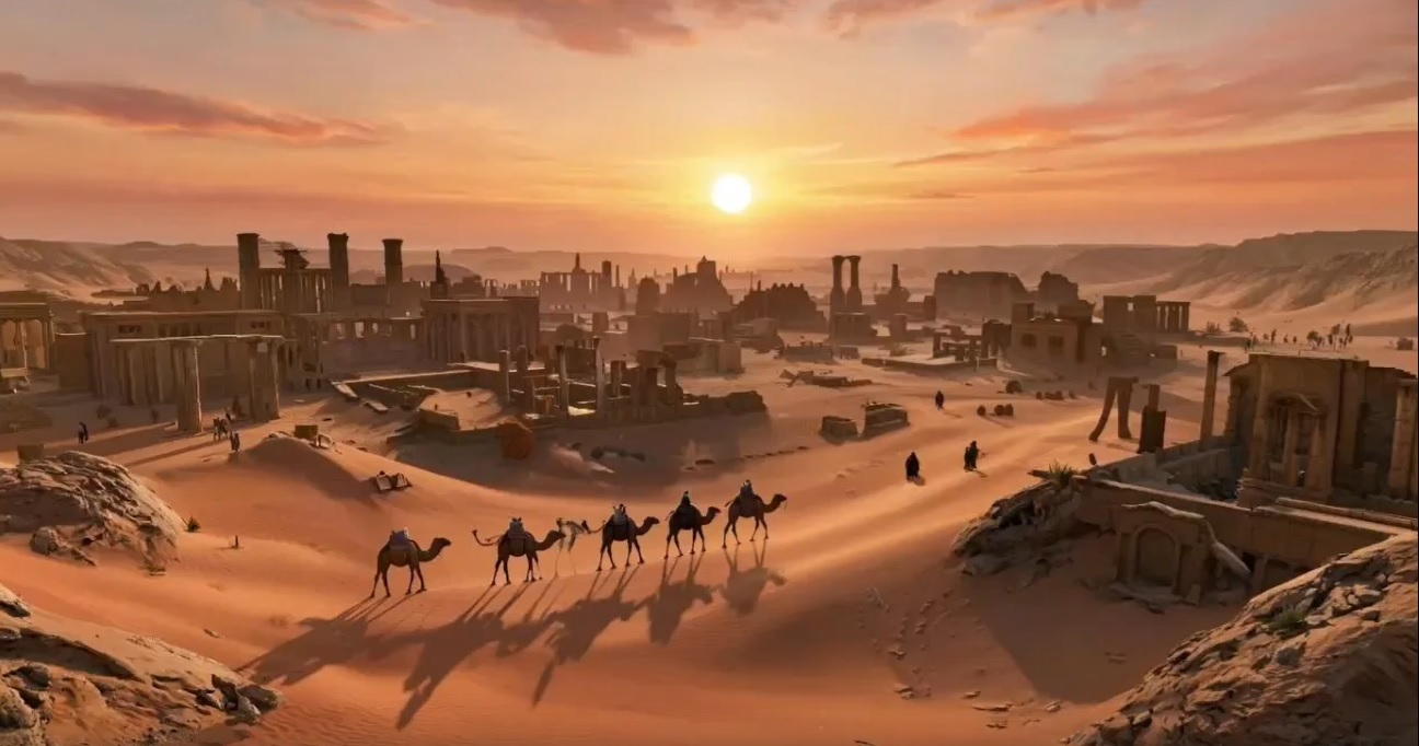 Бредут по барханам верблюды в закат