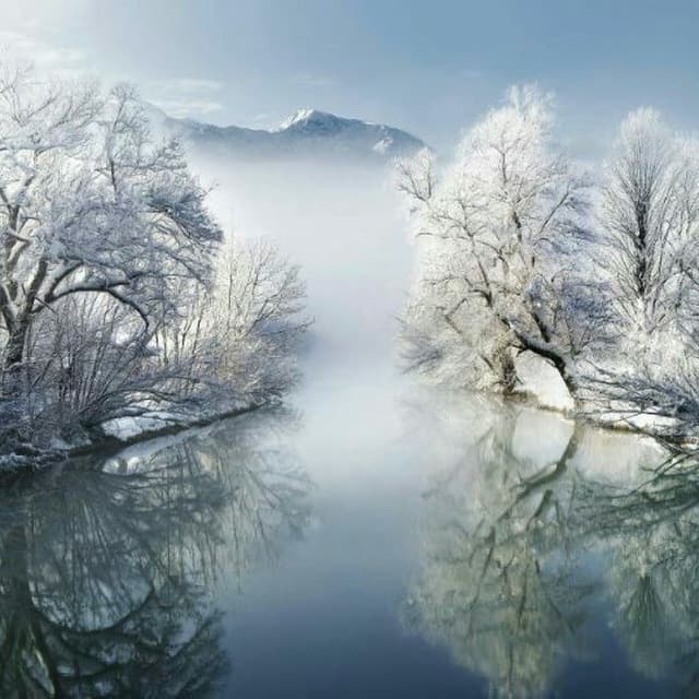 И очертания всех гор ты стёрла ластиком своим. Из труб струится низко дым. И атмосферное давление упало -в зоне риска. Уныло настроение-зима уж близко. И утром иней на траве, как по мозаике листве, что беспорядочно вокруг замёрзла вдруг,- узором колким проявился. И белый снег уже, роился, шёл неустанно- нынче рано. И скрылся вид унылый под белой пеленой ,и воздух стылый накрыл волной пространство света-зимы победа ликовать. И власть Мороза, его стать во всей красе. В снегу деревья все в лесу дремучем и волшебном. И воздух хладный ,но целебный струился паром в лесу забытом старом. В воспоминаниях, как в сказке, остались ярки краски и позолоты желтизна. Ель, пихта и сосна остались неизменны зелёны совершенно, не тронуты дыханием осенним. И на снегу их веток тени-голубезной сочатся. А тучи в небе мчатся, гонимые ветрами, над белыми полями, над мрачными лесами, над старыми домами, снЕга несут обилие-зимы смурной идиллия. И нету осени печальной , а лишь в поэзии сакральной. Зима явилась, как царица, свои дары воздать сторицей.