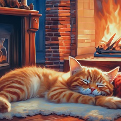 Кот растянулся у огня!