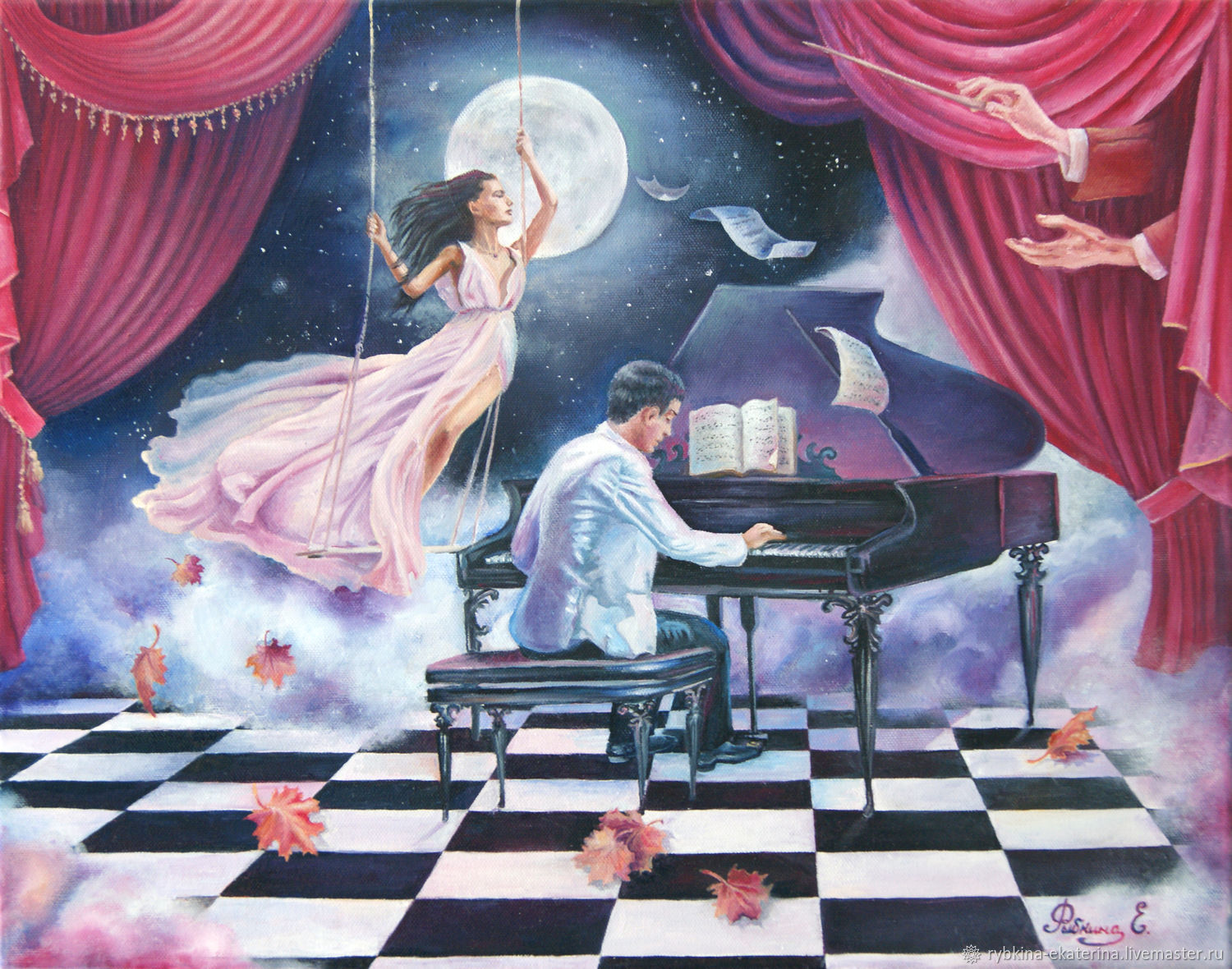 Он за роялем с восторгом играет;