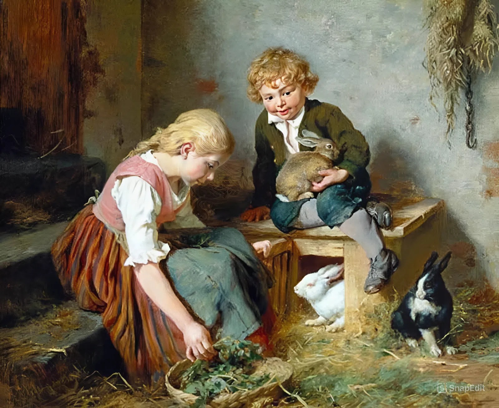 ДЕТИ И КРОЛИКИ - Felix Schlesinger (1833-1910)