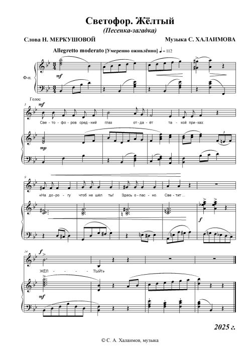 Песенка-загадка Светофор Жёлтый С. Халаимова