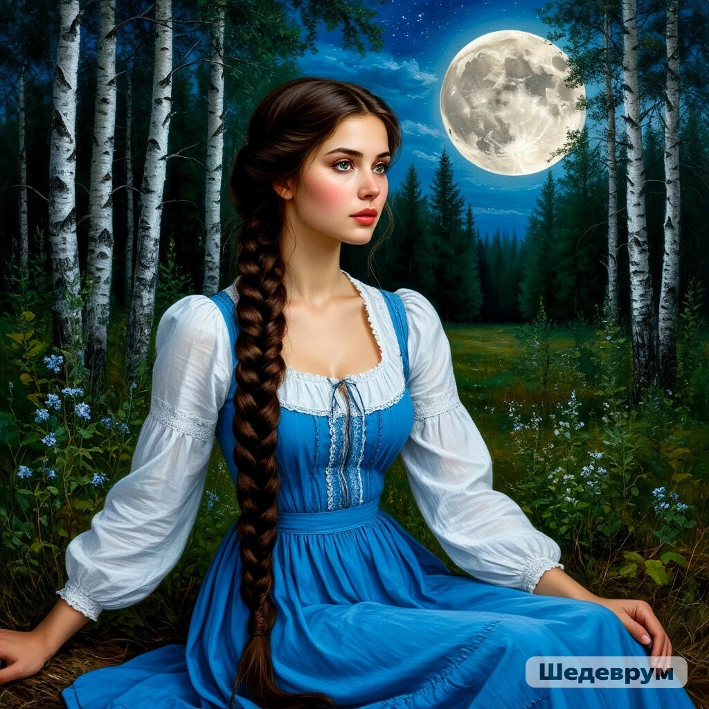 Глядь, девчонка лет шестнадцати в кофточке белой, сарафане простеньком по щиколотку, коса через плечо толстенная, улыбка белозубая.