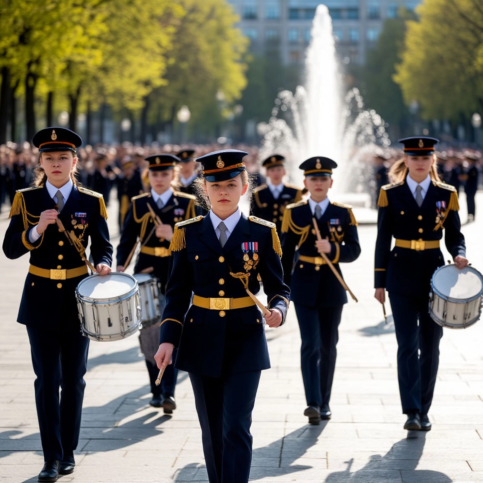И барабанщицы идут.