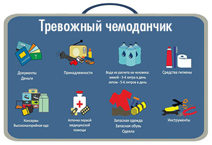 Помимо сказанного, каждый Человек всегда должен иметь при себе, собранный на тот Случай, "Тревожный Чемоданчик" с Продуктами Длительного Хранения, Предметами Первой Необходимости, Лекарствами, Документами и (обязательно!!!) с некоторой Суммой Наличных Денег.