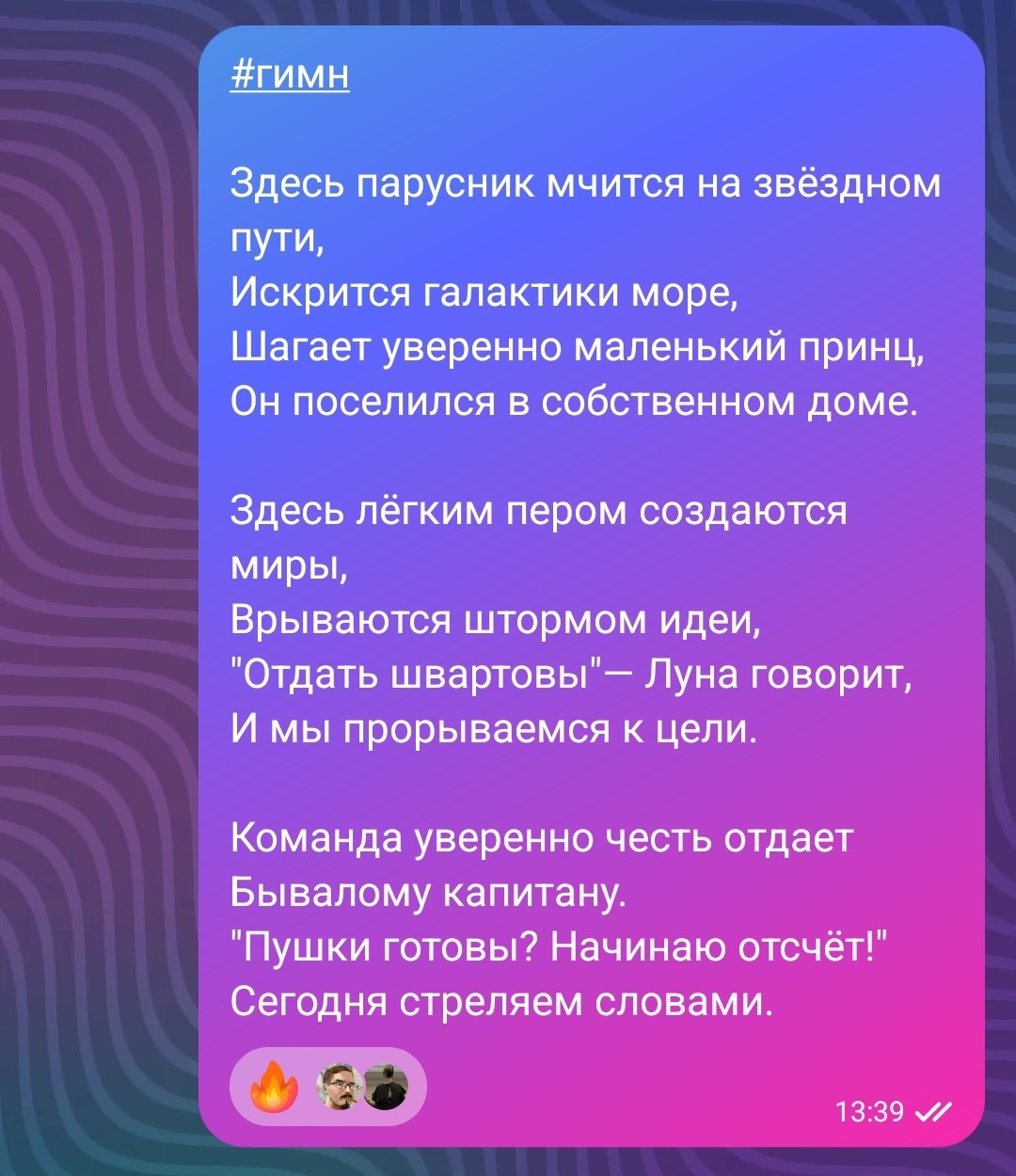 на литературном марафоне написала гимн своей коман