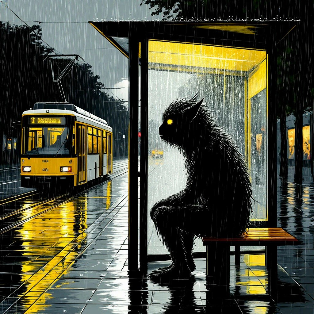 на остановке уютно под крышей…