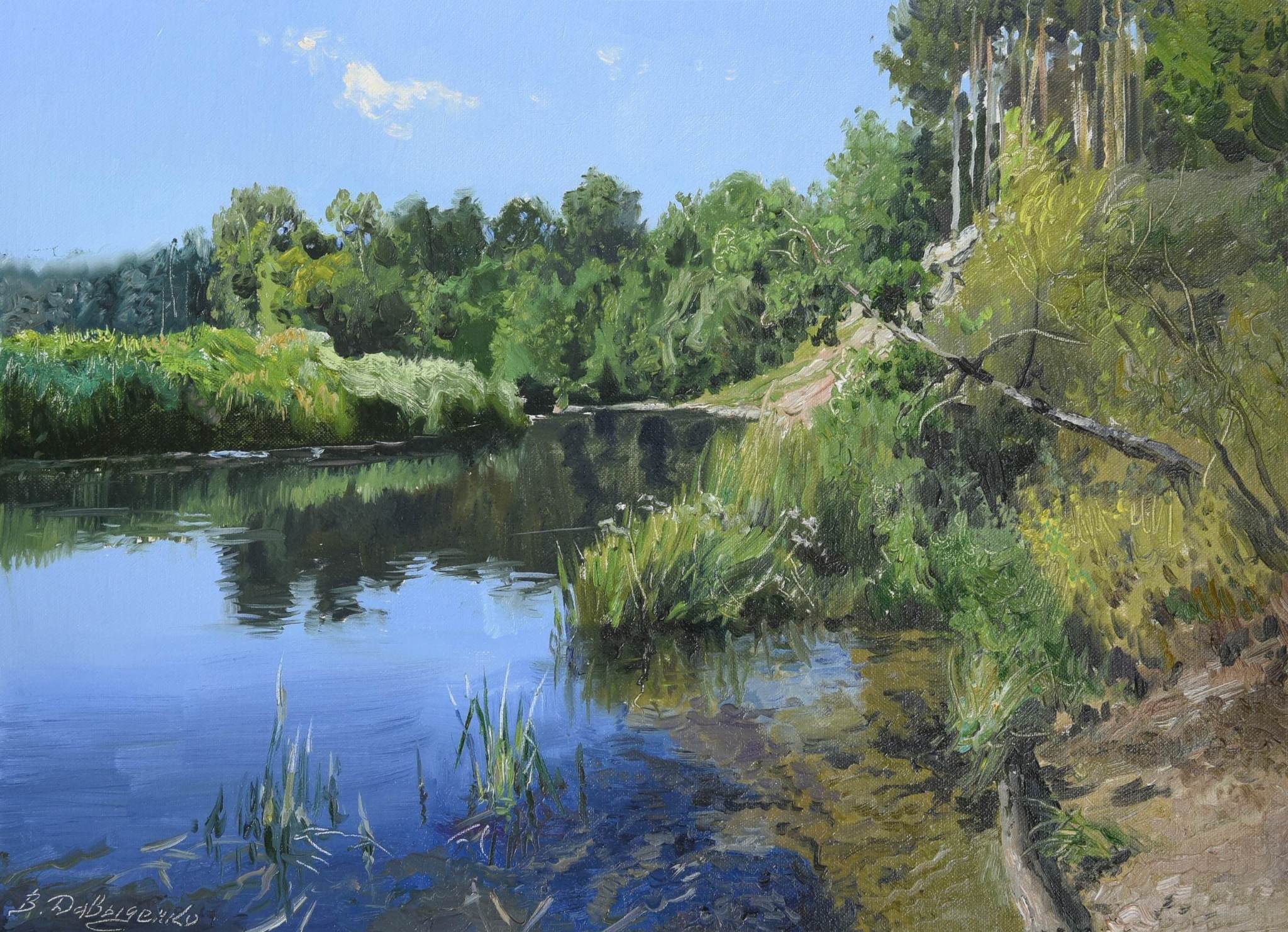 На фоне зеркала речного