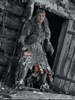 Подъезжают к дому, там избушка,