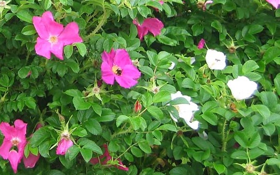 На газоне цвёл шиповник,
