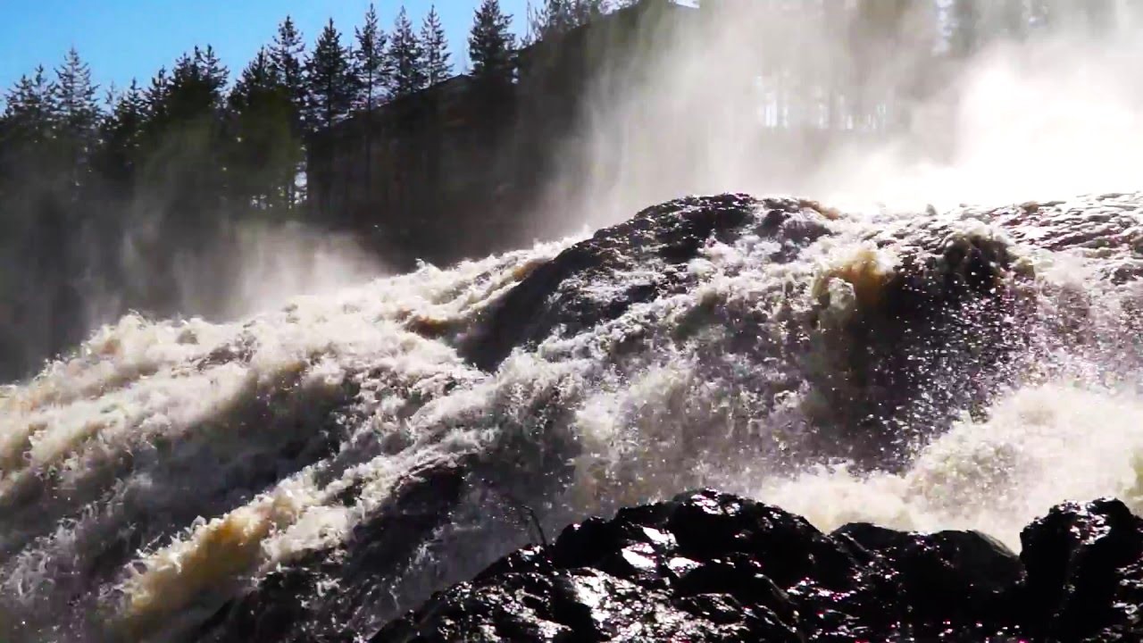Среди высоких скал на мощных водопадах