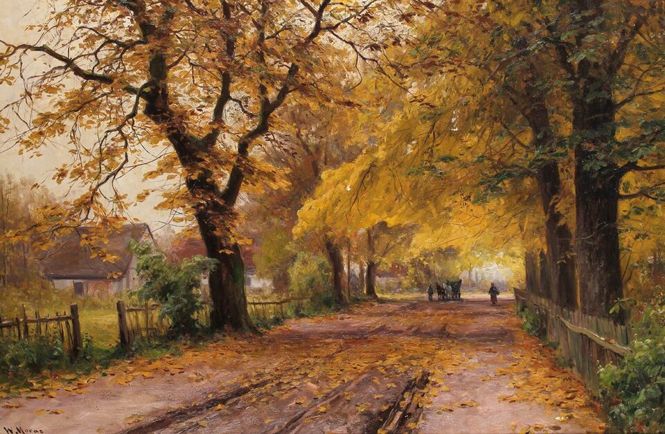 И медной охрою присыпаны дорожки,