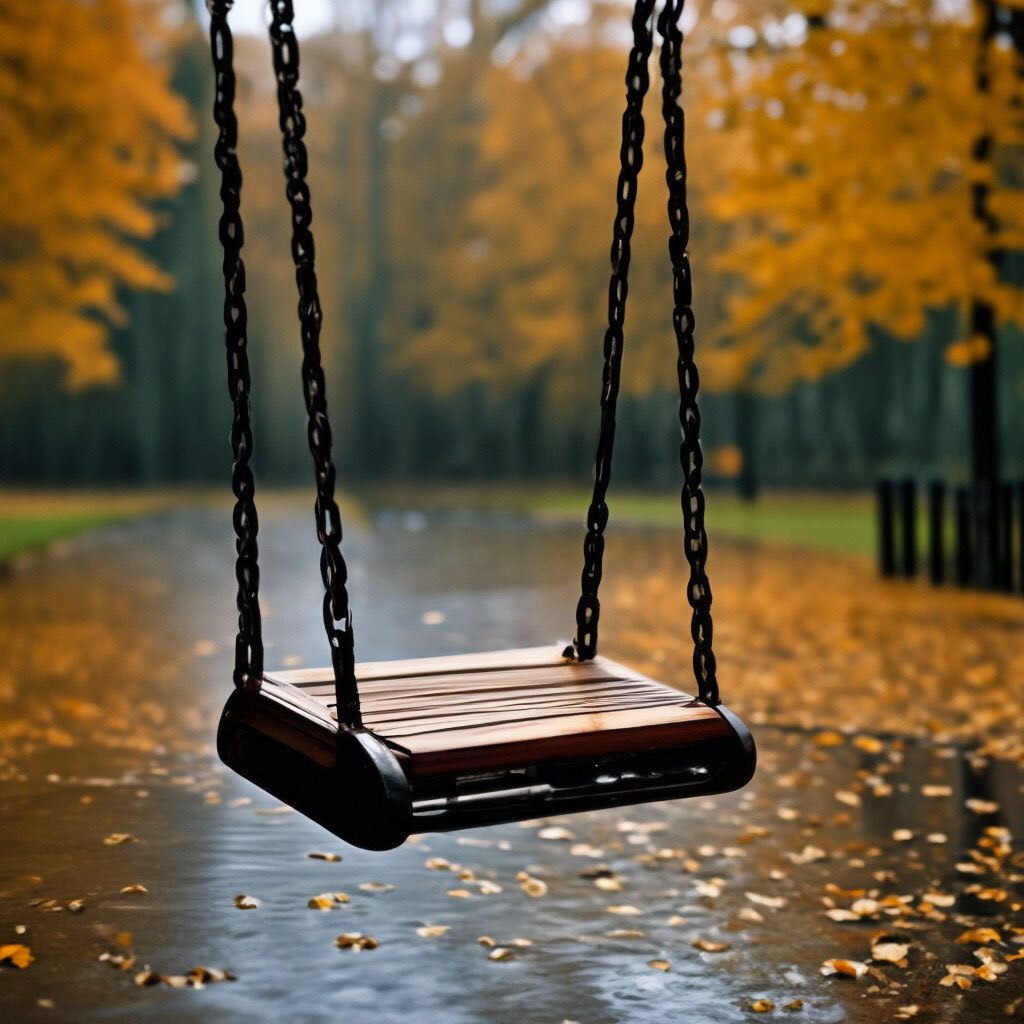 в опустевшем парке качели