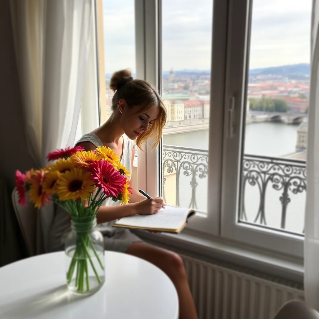 На столе - цветы в прозрачной вазе,