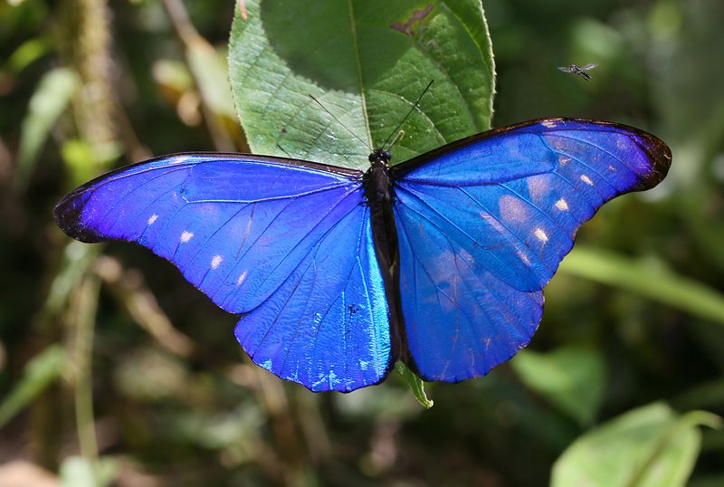 На нём уселся синий мотылёк,