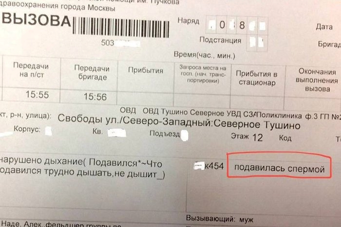 Диагноз – Спермой подавилась жена,
