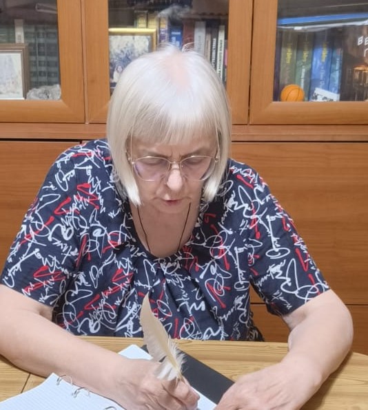 Перо гусинное в руках.