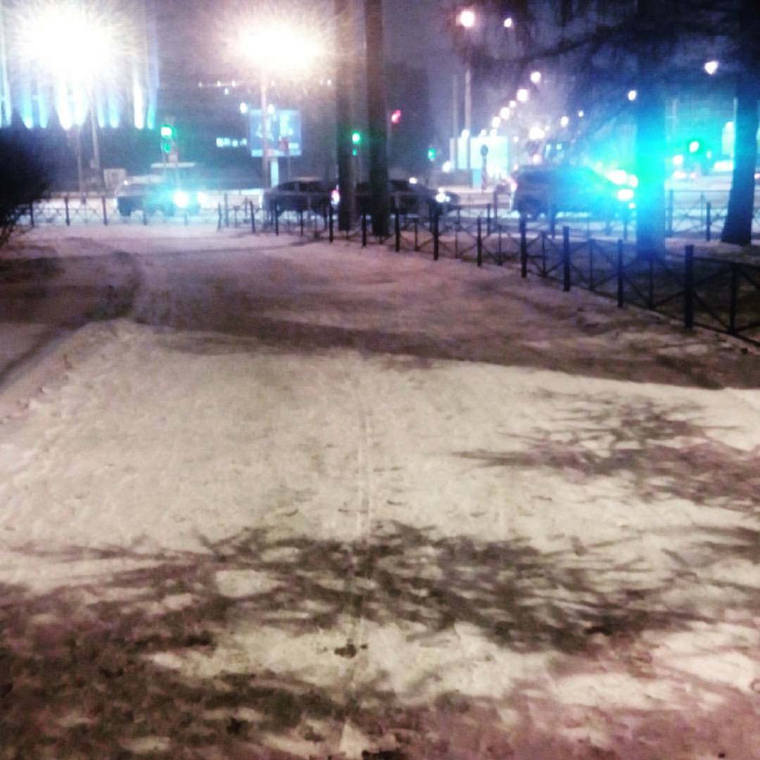 А тротуар в утоптаном снегу -