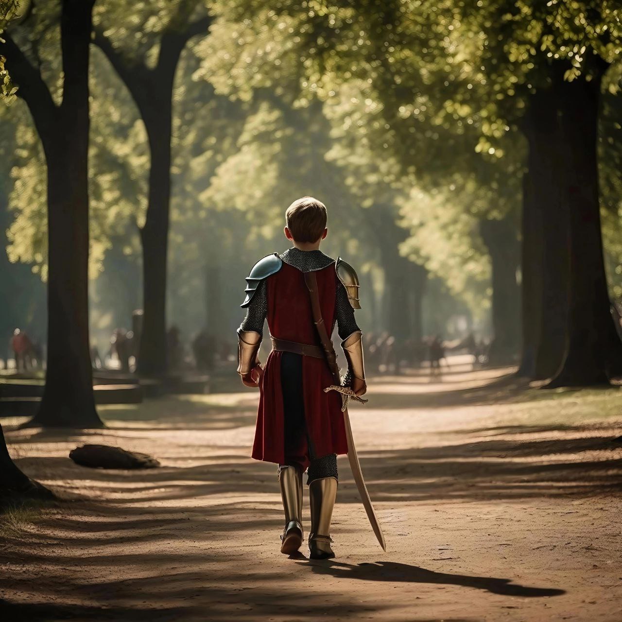 Наш рыцарь ступает, прижав меч к груди.