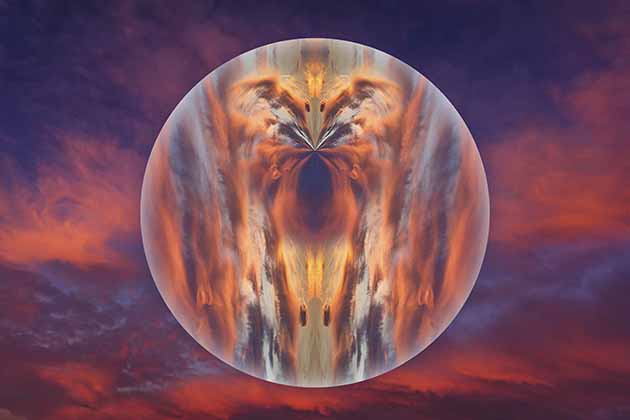 Небесный круг создан снимками неба и воды в фотошопе. Это сложный оригинальный фотомонтаж. Из фондов Избушки Волшебных Традиций на Байкале в Листвянке.