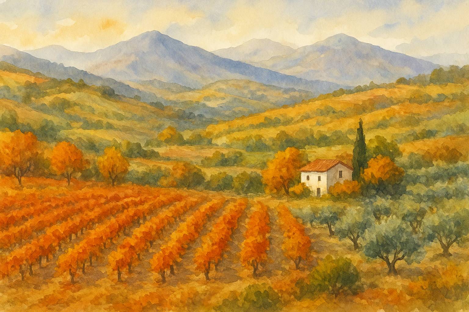 Олива спит на склонах гор,