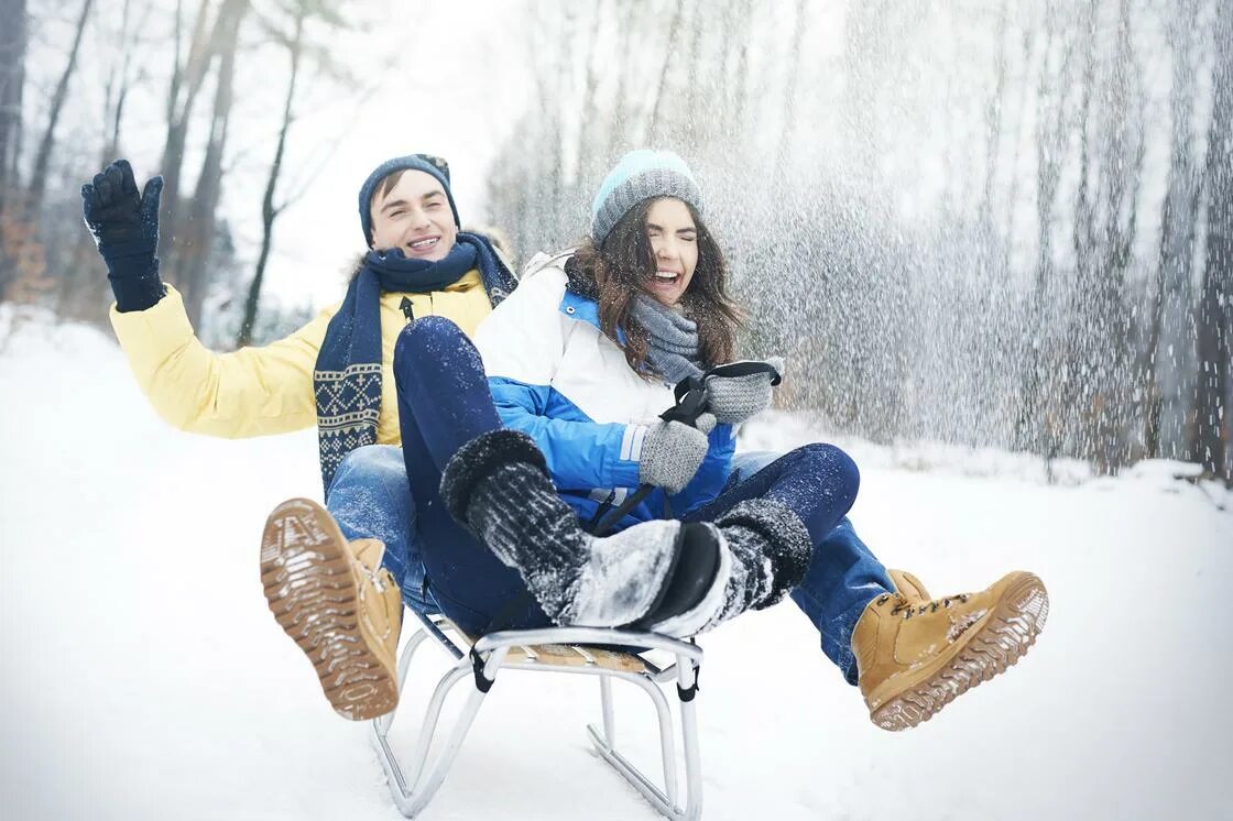 Мы мчимся на санках с горы.