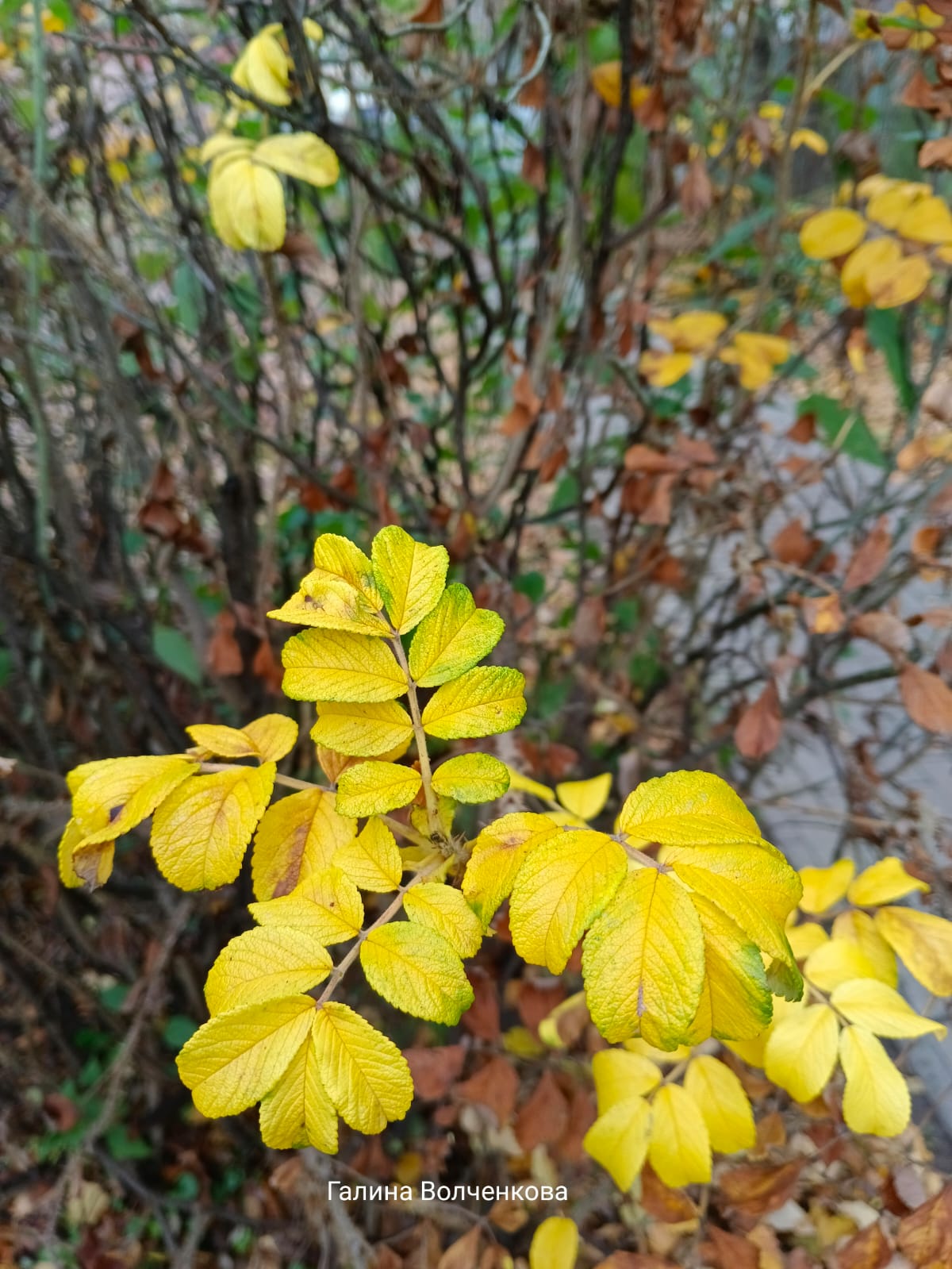 На веточках отдельных листьев жёлтых